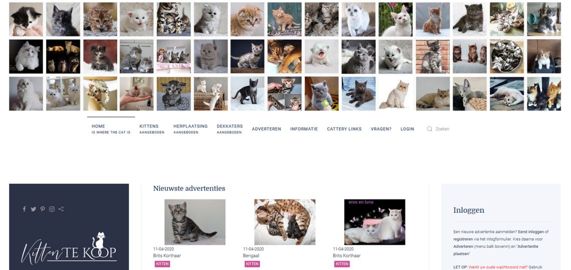 Het werd hoog tijd om de website KittenTeKoop verder door te automatiseren. Daarbij werd gelet op het gebruikersgemak en extra advertentie mogelijkheden voor de Catteries, zoals vet, omrand, naar boven plaatsen, gebruikersprofielen, locatie weergaven etc. Al met al een hele grote kluif... maar wel een leuke! ;-)
