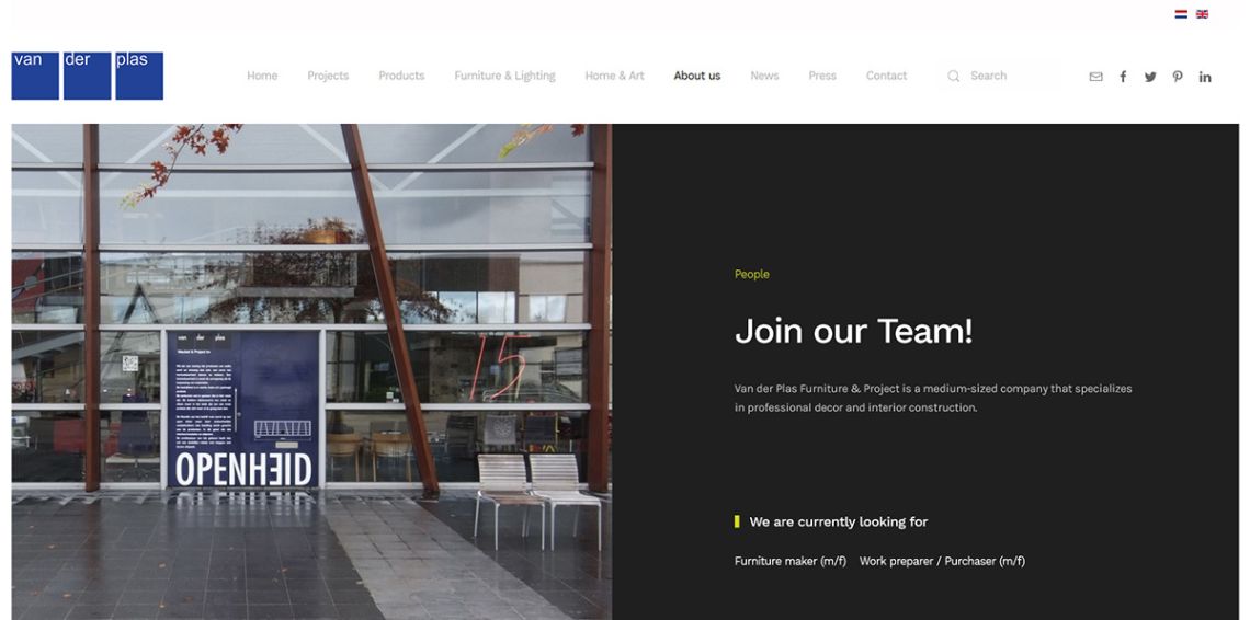 Eén van de allereerste websites die ik ooit in opdracht mocht maken was voor VAN DER PLAS Meubel & Project B.V. Onlangs mocht ik opnieuw aan de slag met een complete re-style. Dat is gelukt en we zijn trots op het resultaat.